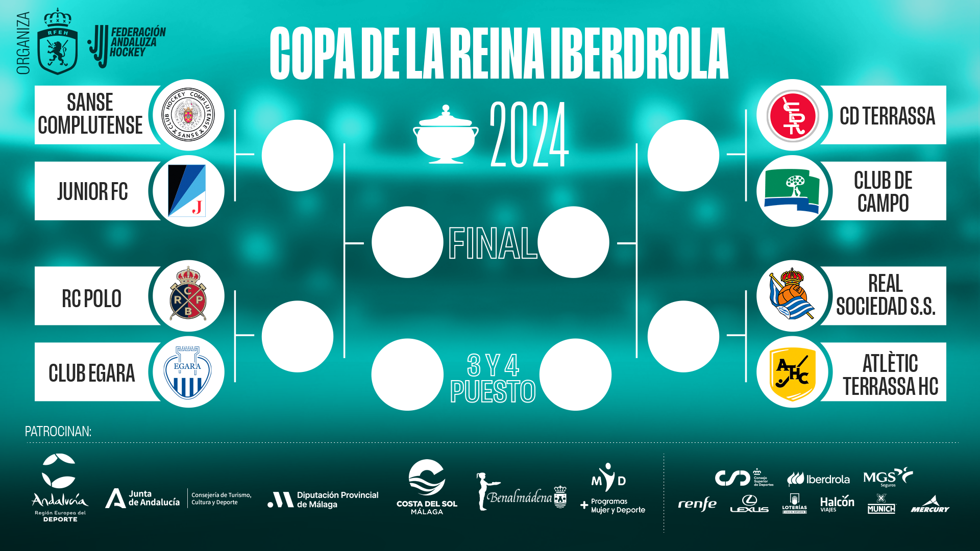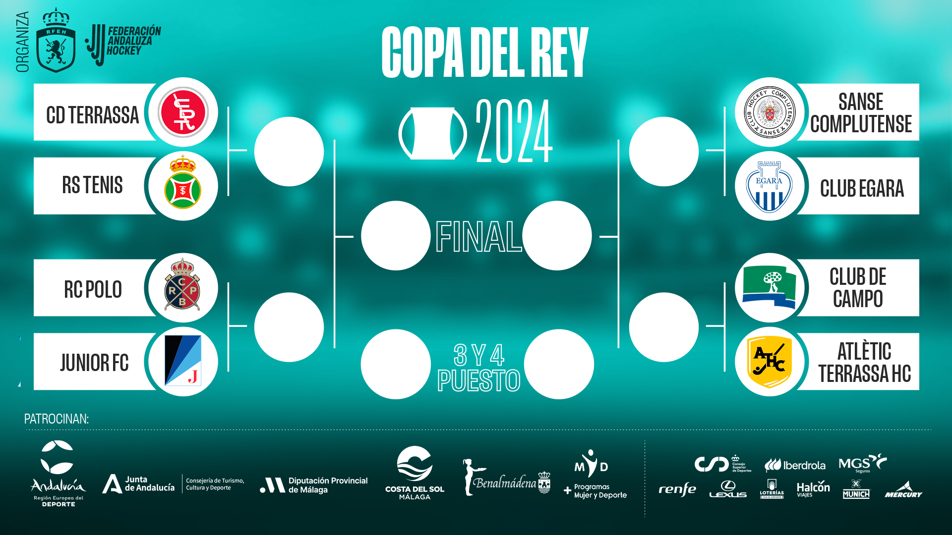 Los partidos se disputarán en el Campo Municipal de Hockey El Retamar de Benalmádena (CAMPO 1) y en la Ciudad Deportiva de Carranque, Málaga (CAMPO 2)