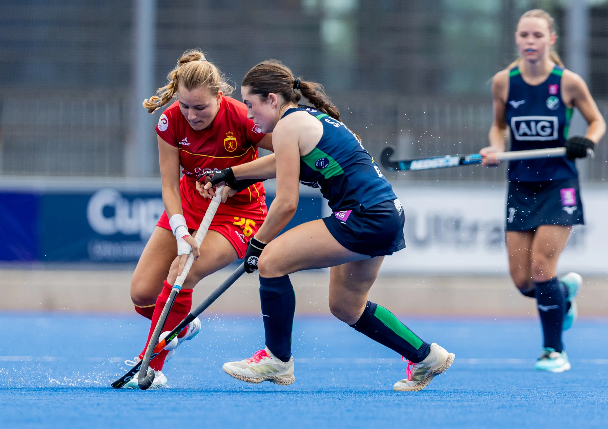 La misma dinámica se mantuvo en el último cuarto. A cinco minutos del final, con España dominando claramente la posesión, las españolas dispusieron de otro Penalti Córner, pero la portera irlandesa desvió la bola con los pies. Alejandra de la Llama lo intentó por la línea de fondo buscando conectar primero con Ivet Martí y después con Marta Alcaraz, aunque sin éxito.